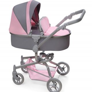 Badger Basket Daydream Multi-Function Single Doll Pram & Stroller - Gray/Pink -