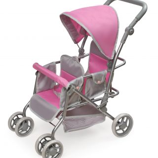 Badger Basket Voyage Twin Carriage Doll Stroller - Gray/Pink