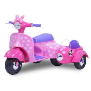 6V Disney Minnie Mouse Happy Helpers Scooter with Sidecar Ride-On Toy by Kid Trax, 1 mph