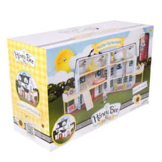 Honey Bee Acres Buzzby Farmhouse 25 Piece Three-Story Country Dollhouse with Furniture & Exclusive Rabbit Figure Doll Playset for Kids Ages 3+