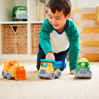 Original price was: $41.07.$30.39Current price is: $30.39.Add to cartScoop it! Mix it! Dump it! Just another earth-moving, earth-saving day at the job site for the Green Toys Construction Trucks! Made from 100% recycled plastic with no BPA, phthalates or PVC, the fleet includes 1 Scooper with a moveable front-loader, 1 Mixer with a revolving drum, 1 Dumper with a classic open-box bed, and 3 Construction Dogs! Perfect in a sand box, toy box, or gift box, these pint-sized trucks are just right for little hands, and can easily be tossed in a diaper bag for on-the-go fun. Each vehicle comes with its own Construction Dog, and the figures are interchangeable among all three. Built to last with no metal axles, these vehicles are made safe for children and the earth they play on. Appropriate for ages 24 months and up. Color combinations may vary.