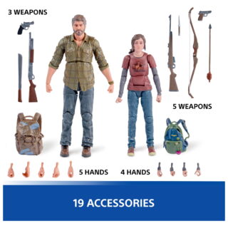 PlayStation The Last of Us, 2-Pack 6 Joel & Ellie Action Figures with 19 Accessories, 17+