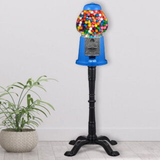 Original price was: $52.66.$41.60Current price is: $41.60.Add to cartServe candy with a side of vintage-looking fun with the 15-inch mini candy dispenser by great northern popcorn. Inspired by iconic candy machines from the 1920s, the premium old-fashioned design of this candy machine in fun blue features a clear globe made of durable glass and a cast metal base with vintage-style engraving on the coin mechanism’s faceplate. This candy machine dispenser holds up to 5lbs of small bubble gum or other hard sweets with a diameter of up to 0.62-inches. The bubble gum machine for kids accepts pennies, nickels, dimes, and quarters, allowing it to pull double duty as an old-style coin bank to teach kids the value of saving money.