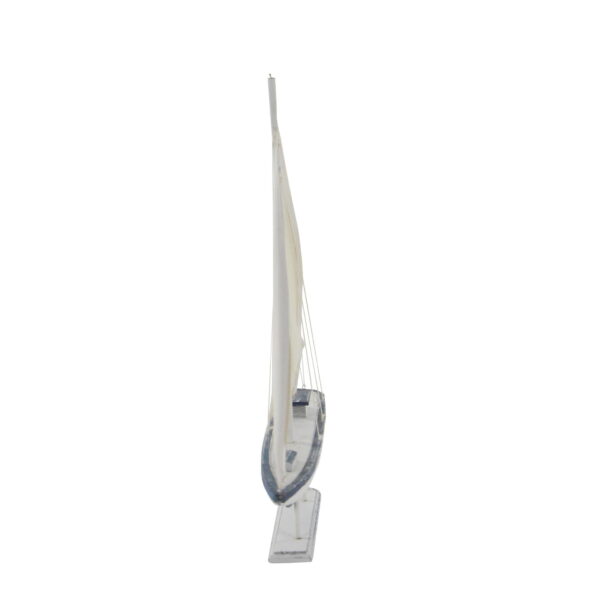 25″H, 17″W White Wood Handmade Sail Boat Sculpture, by DecMode (2 Count) is a unique addition to your stylish home. Perfect for living rooms or offices, place this sailboat set of 2 home decor statues on a wooden console with stacked books and greenery for a tranquil aesthetic. Designed with felt or rubber stoppers at the base that prevent scratching furniture and table tops, as well as sliding around. This item ships in 1 carton. Please note that this item is for decorative use only. Pine sculpture makes a great gift for any occasion. Due to the handmade nature of this item, no two will be alike, there will be slight differences in shape, size, and color. Suitable for indoor use only. This item ships fully assembled in one piece. Made in India. This white colored pine statue comes as a set of 2. Coastal style.