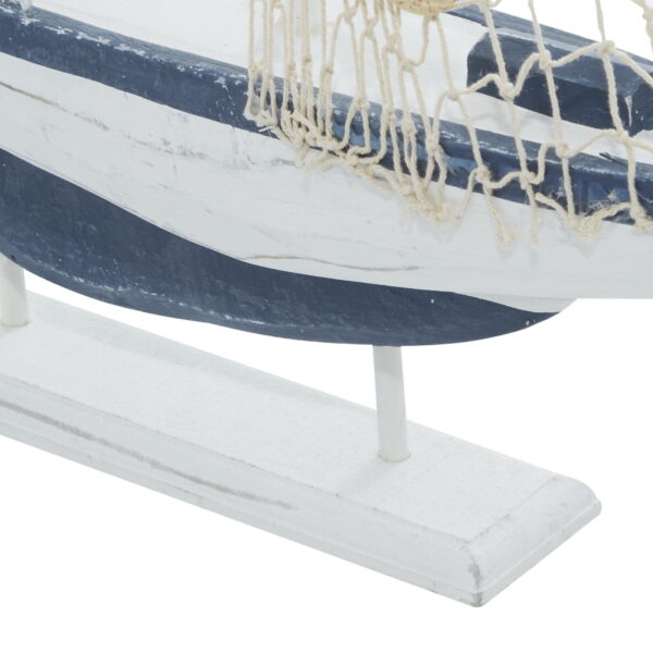 Inspired by blissful serenity and the allure of the sea, where soothing hues and natural textures bring effortless charm to the home Made of pine wood, linen, and jute accents, this white decorative sculpture set exudes both durability and charm Sailboat decorative statue set boasts a distressed blue and white hulls with red and yellow tones, creating a charming coastal aesthetic Pine set of 2 sculptures boasts white linen and netting sails adorned with multi-colored floaters, shells, and starfish embellishments for added flair Each white wood sculpture measures 17L x 3W x 25H inches, and weighs 1.74 lbs Distressed white home decor figurines feature two sailboat sculptures with a distressed patina pattern on a rectangle base for an authentic weathered look Wipe clean with a dry cloth Coastal set of 2 accent statues is crafted from mounted pine wood, attached rope materials, and coastal accents Coastal style 25″H, 17″W White Wood Handmade Sail Boat Sculpture, by DecMode (2 Count) makes a perfect addition to any home