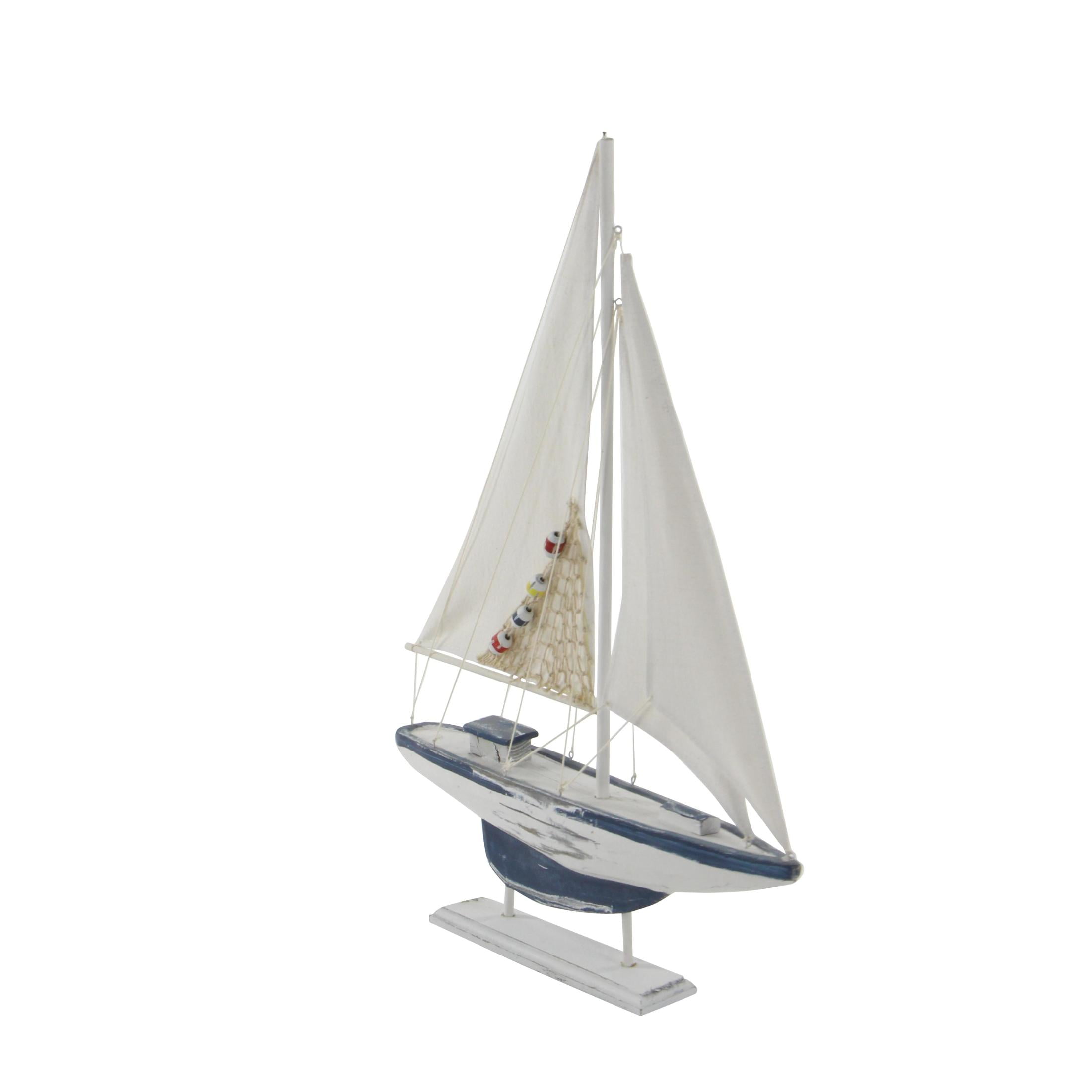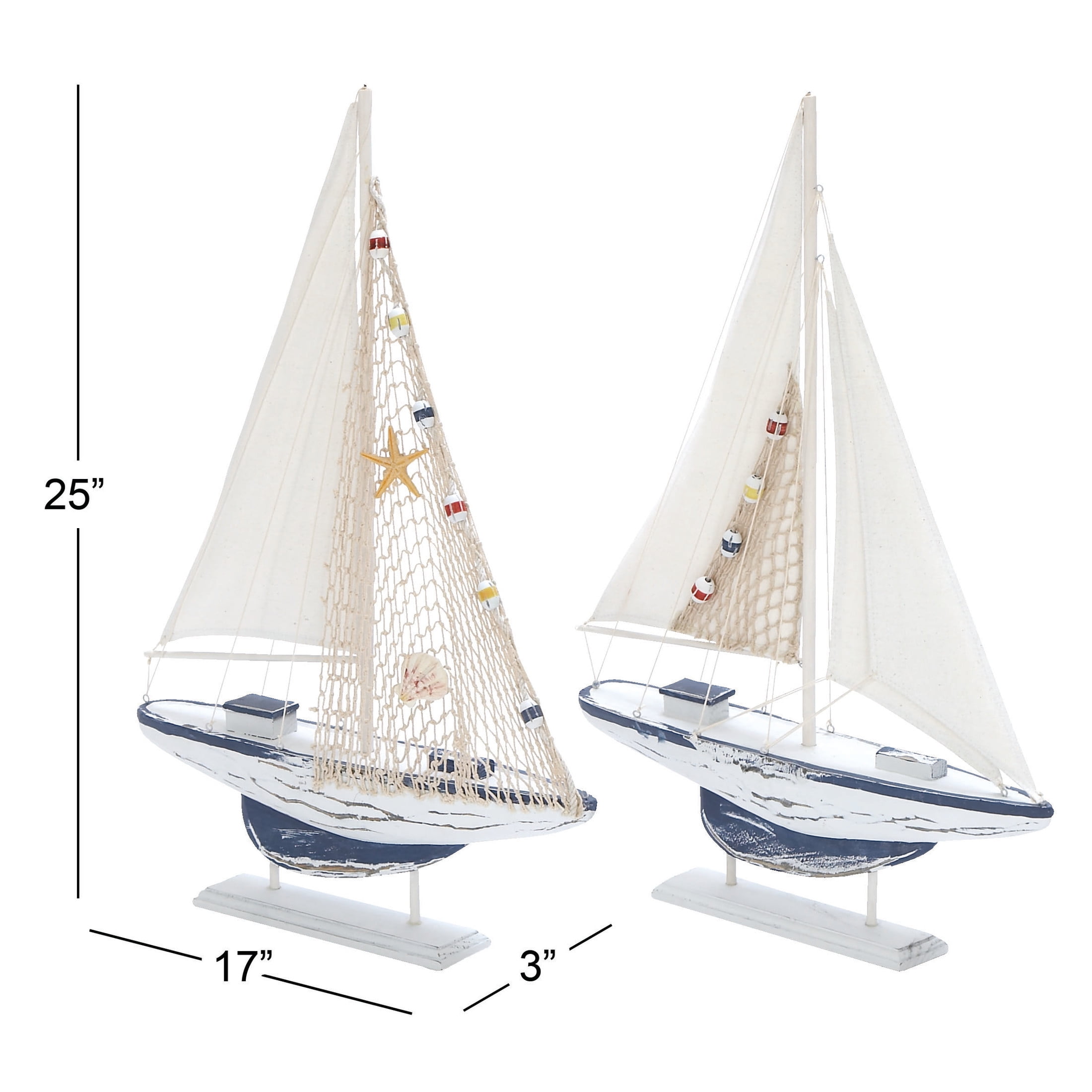 25″H, 17″W White Wood Handmade Sail Boat Sculpture, by DecMode (2 Count)