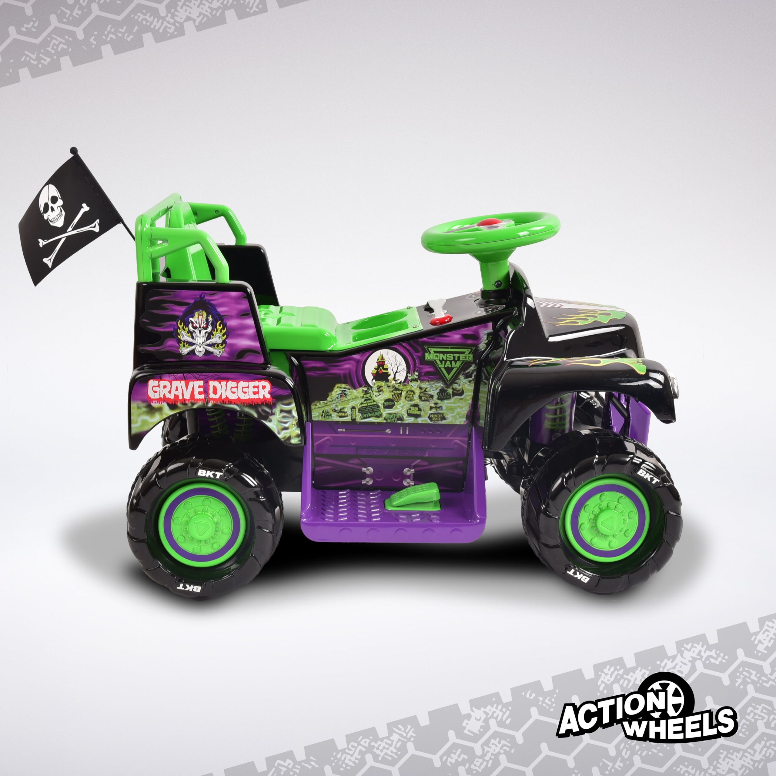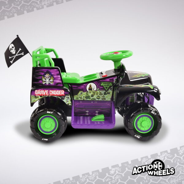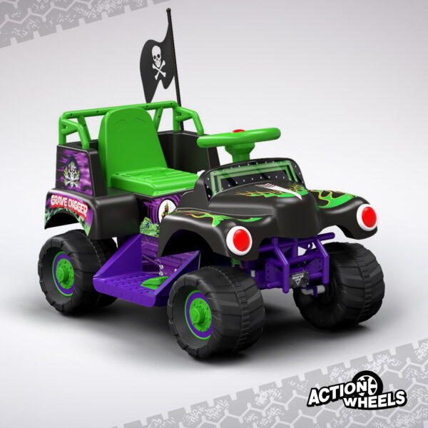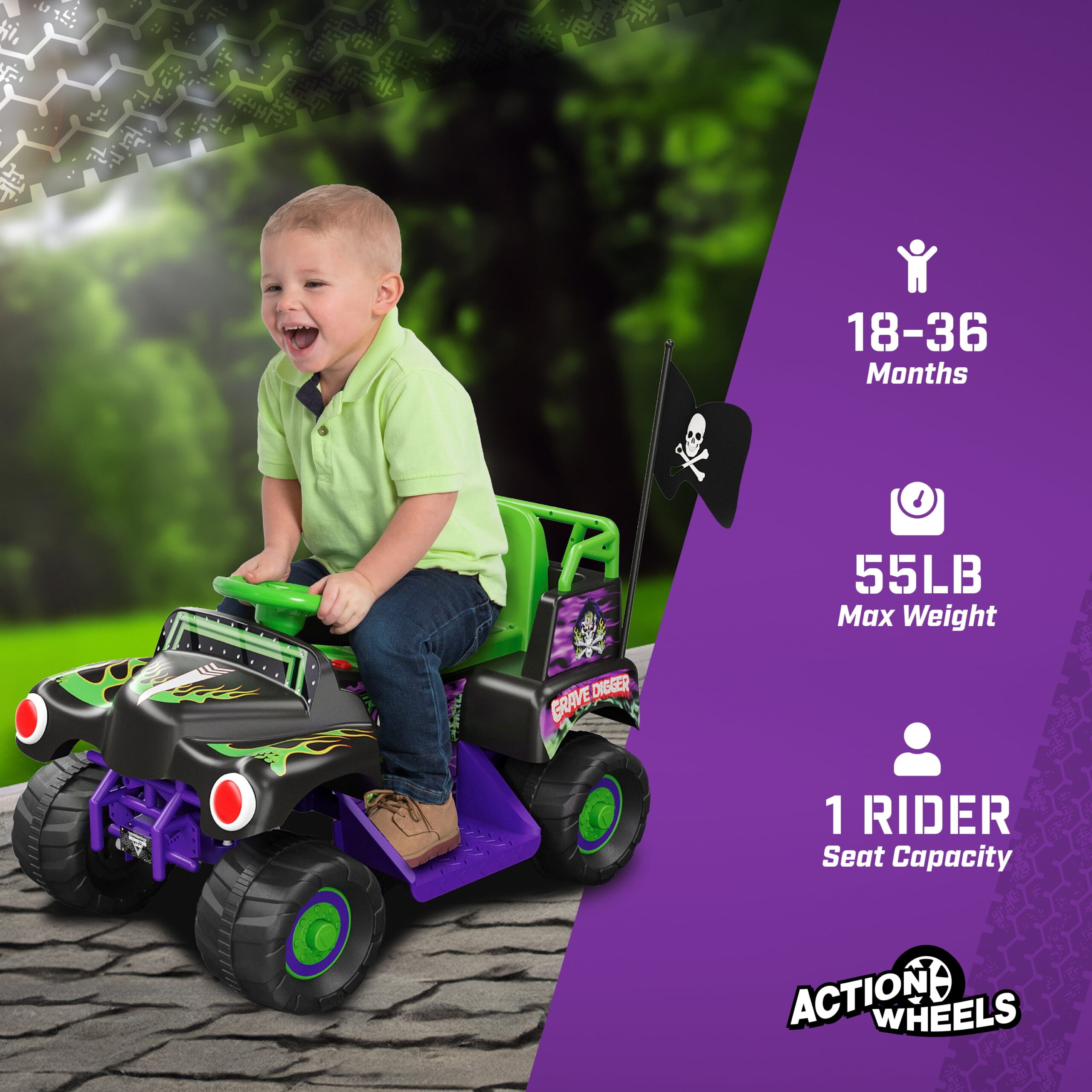 Monster Jam Fans! Are you ready to feel like the real deal and break out into the arena? The 6 Volt Monster Jam Grave Digger Battery Powered Ride-On for boys and girls is built tough for any fan! Featuring real Engine Revving and Crowd Cheering sounds your child will feel like an arena superstar in the 6 Volt Grave Digger! Other key features include: Bone-Shaped Key, Engine Startup Sounds, Working Headlights, Authentic Monster Jam Graphics and Treaded Wheels. Includes a 6 Volt Battery and Charger. All backed by Action Wheels five-star customer service and Distributed by Ballard Pacific Resources.