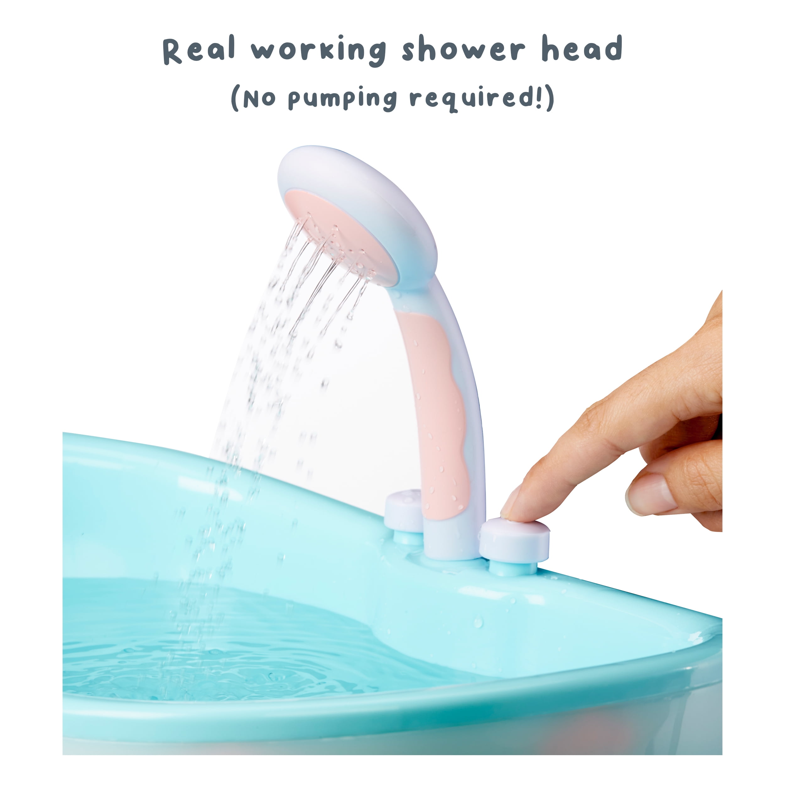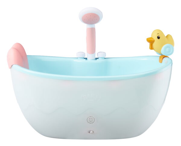 PLAYS MUSIC & LIGHTS UP: With the touch of a button, you’ll hear music and sound effects as well as see the bathtub light up with colorful lights! DUCKY SQUIRTS WATER: For more bath time fun, squeeze the rubber duck to squirt water! INCLUDES: Bathtub, heart-shaped neck pillow and toy rubber duck FITS DOLLS UP TO 17″: Perfect accessory for all your BABY born dolls. Hard-bodied dolls recommended for water play. Dolls sold separately. WATCH ON YOUTUBE: Watch new episodes of the BABY born animated series on YouTube. Just search for “BABY born”. THE BRAND THAT PARENTS TRUST: For over 30 years, BABY born has been the legacy nurturing doll brand that parents trust. Our inclusive, realistic, and premium-quality dolls & accessories have been thoughtfully designed to encourage empathy and imaginative play. REAL WORKING SHOWER HEAD: The shower head is motorized to sprays out water when the bathtub is filled. No pumping required! Extend the showerhead hose to wash your baby doll. For use with dolls designed for water play. Doll not included. FOR KIDS AGES 3 AND UP: Girls and boys ages 3 years old and up will love the expanded play this bathtub brings to playtime.