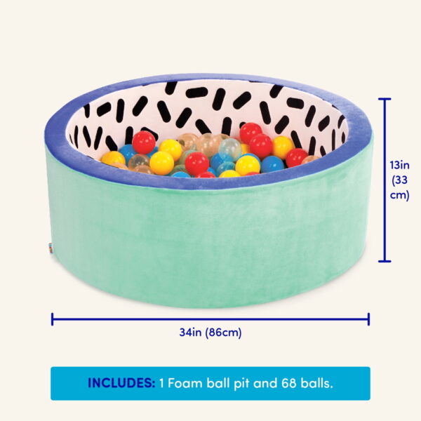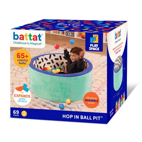 Transform any room into a space for fun with a soft and colorful indoor foam ball pit Comes with 65+ crush-proof balls and features a removable and machine-washable cover Kids can bounce, laugh, explore, and develop gross motor skills as they play Contemporary colors and modern design looks great in any room The Battat Hop In Ball Pit is recommended for toddlers, kids 12 months and over