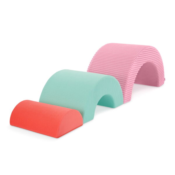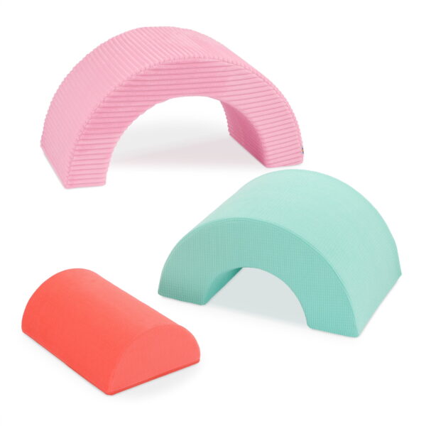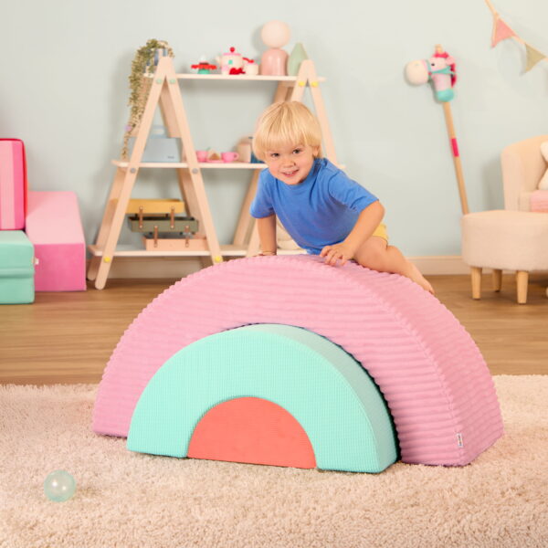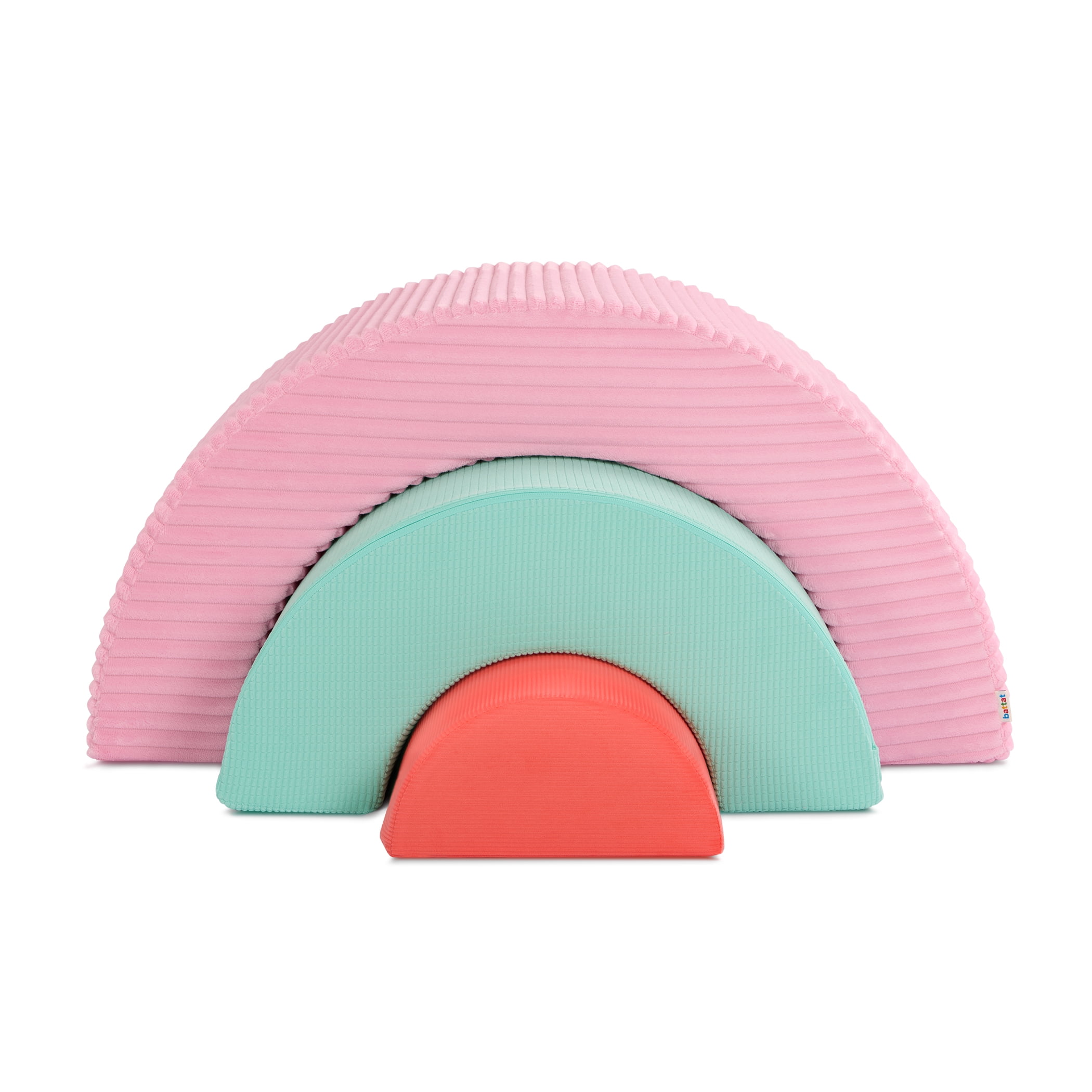 Make playtime a real treat with the Sweet Retreat Rainbow Arches from Battats Play Space collection! With soft pastel-perfect fabric, each arch has a different texture to add a dash of sensory fun. Made for crawling, stacking, rocking, or reclining n relaxing, this foam arch trio inspires open-ended play and endless adventures! Flip em to create cozy seats, stack em into a rainbow, or use em as a bridge to an imaginary castle its all up to your little ones imagination! As kiddos climb the rainbow, theyll be working their gross motor skills making active play easy with these nesting foam arches. Cleanup is also pretty sweet with removable, machine-washable covers!