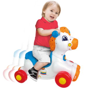 A fun twist on a classic rocking horse, the Rockin’ Zebra from Battat is an adorable plush pal with a rainbow-colored mane. Who could resist going for a ride? Soft and cuddly, with smooth wooden handles and a sturdy base, the zebra even makes a fun clip-clop sound as you ride back and forth. No batteries and no assembly required! This one-of-a-kind, unisex plush rocker toy helps little ones improve their balance and encourages imaginative play. So saddle up and ride into fun! The Rockin’ Zebra is recommended for toddlers 12 months and up.