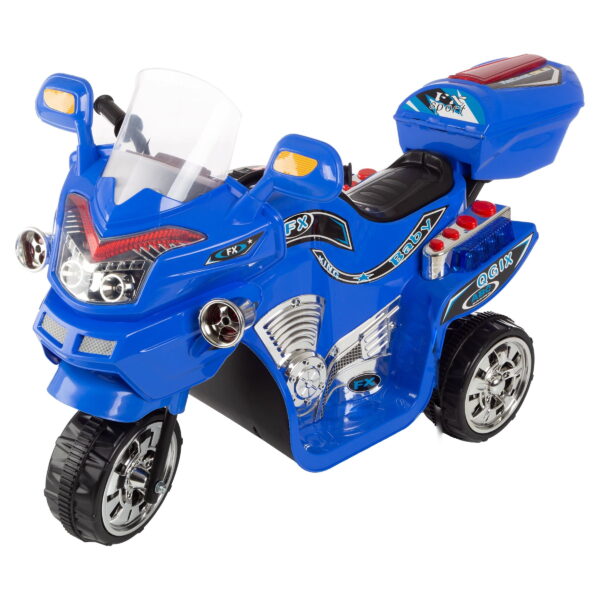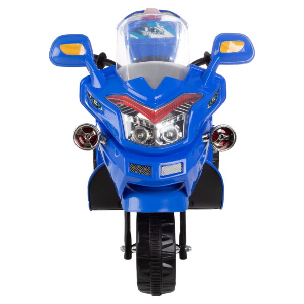 MOTORCYCLE FOR KIDS – The motorcycle for kids aged 3-6 is lightweight and features a compact design for easy transport, perfect for both indoor and outdoor playing on any hard, flat surface. REALISTIC FEATURES – This toddler motorcycle has forward and reverse functions, working headlights, decals, sound effects, a storage compartment, and a top speed of 1.75mph. EASY TO RIDE – Charge the included 6V battery according to the included electric bike for kids instruction manual – then simply just turn it on, press the pedal, and go. SAFE AND DURABLE – Made from rugged high-quality plastics and carbon steel that can hold up to 45lbs, the motorcycle toys are free of banned phthalates. MATERIALS – Plastic and Carbon Steel; Specs: 6V Battery, 15W Motor, 4.5ah. DIMENSIONS – (L) 34.65 x (W) 15.35 x (H) 22.83. COLOR – Blue.