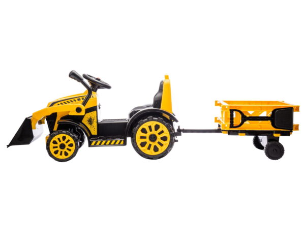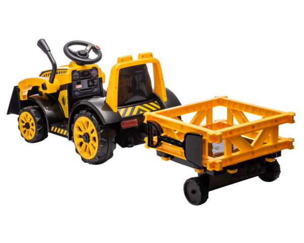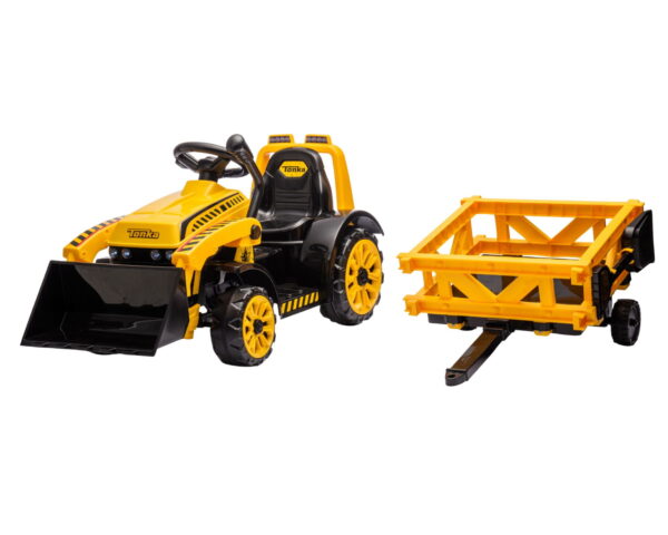 Brand: Tonka; Model: Construction Tractor 6V Ride-On 6V battery-powered ride-on tractor designed for kids Push-button drive with forward and reverse movement Working front loader for scooping and dumping fun Detachable trailer to carry toys and supplies Lights and engine sounds for realistic play Durable construction for long-lasting use