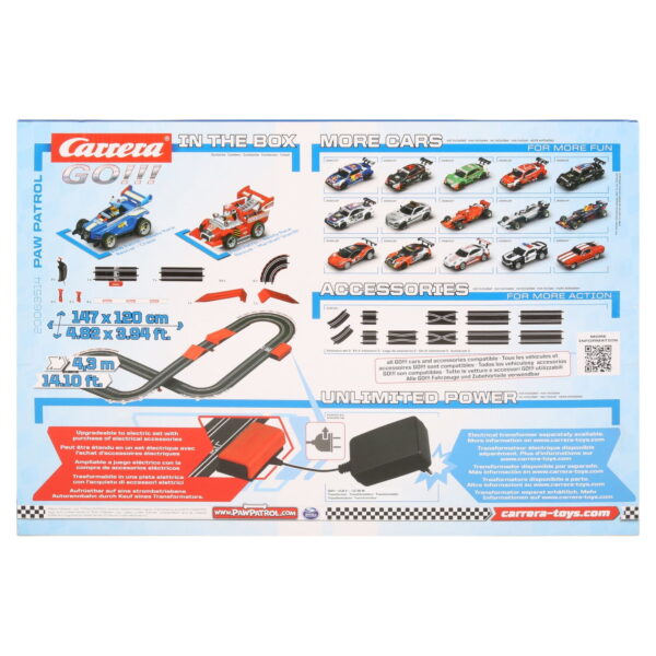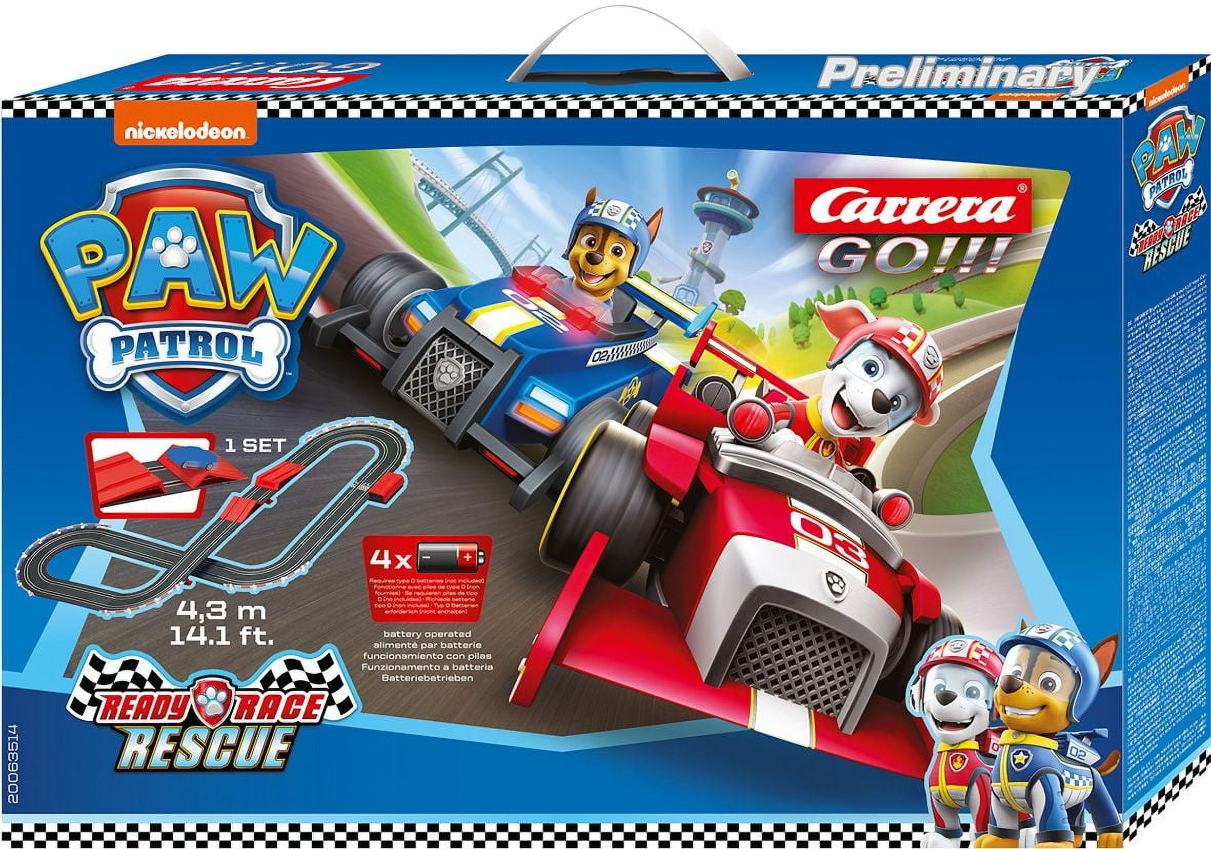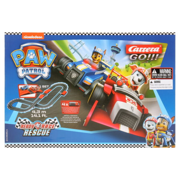 Carrera GO!!! Battery Operated 1:43 Scale Paw Patrol 14-ft. Slot Car Race Track Set w/ Jump Ramp featuring Chase versus Marshall