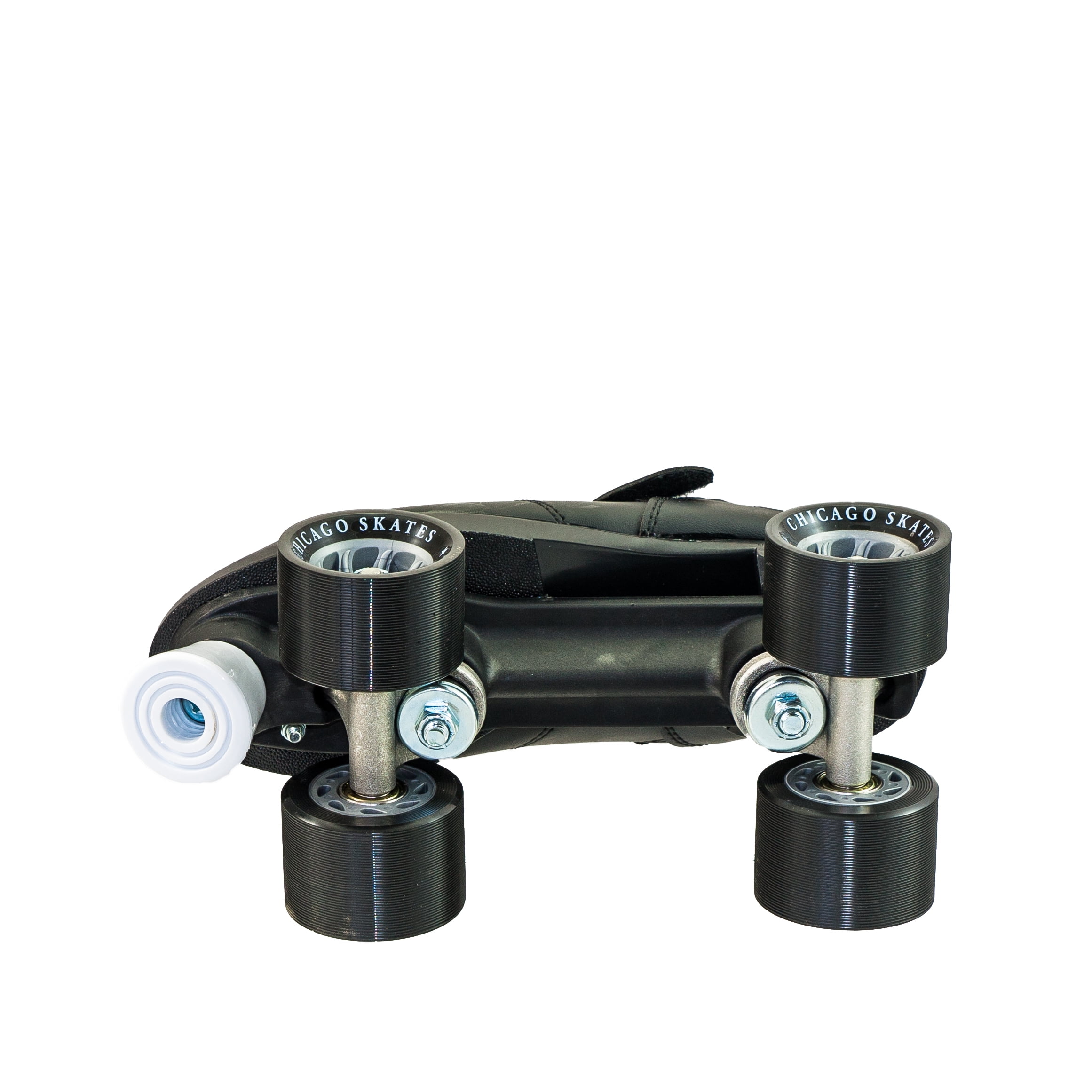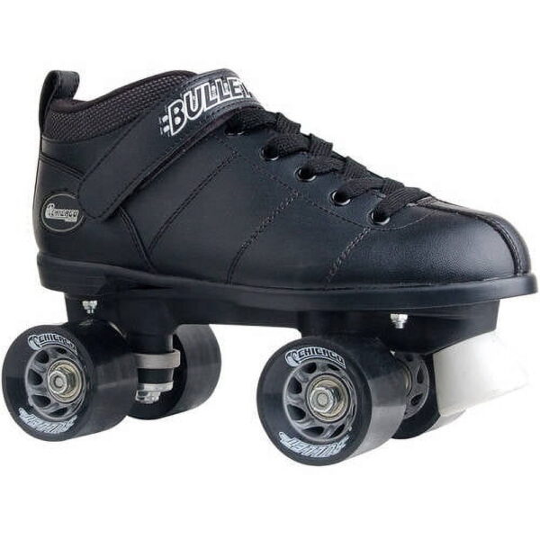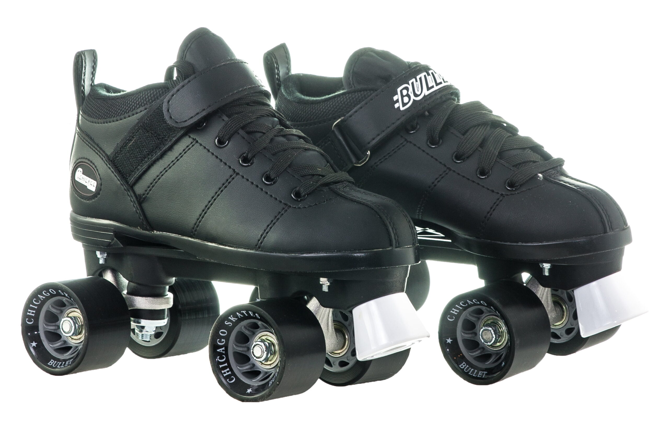 Chicago skates “bullet” speed skates are built for speed and performance. They feature low-cut speed boots with padded ankle collars, lace closures, and a power strap for superior comfort and security. The bullet roller skates also feature a lightweight nylon chassis with an aluminum double-adjustable truck and non-marking toe stop with action cushions. These indoor/outdoor skates also include grooved, 57mm high-rebound urethane wheels and ABEC 1-rated speed precision bearings for a fast and smooth ride. The all-black design of these skates will give your feet a sleek look whether you’re looking to skate circles around your competition or just wheel around town, either way, the Chicago skates bullet speed skates will get you there in style.
