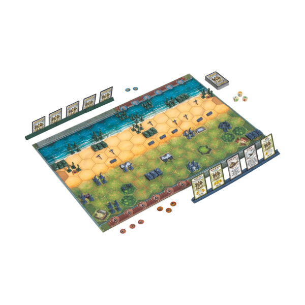 Contents include: game board, 144 Axis and Allied army pieces, 36 obstacles, 44 terrain tiles, 60 command cards, 9 summary cards, 8 battle dice, 2 card holders, and rules For 2-8 players Recommended for ages 8 and up Made in China Brand new condition in original packaging Wipe clean with dry or damp cloth Warning: Choking Hazard – Contains small parts not suitable for children under 3 years
