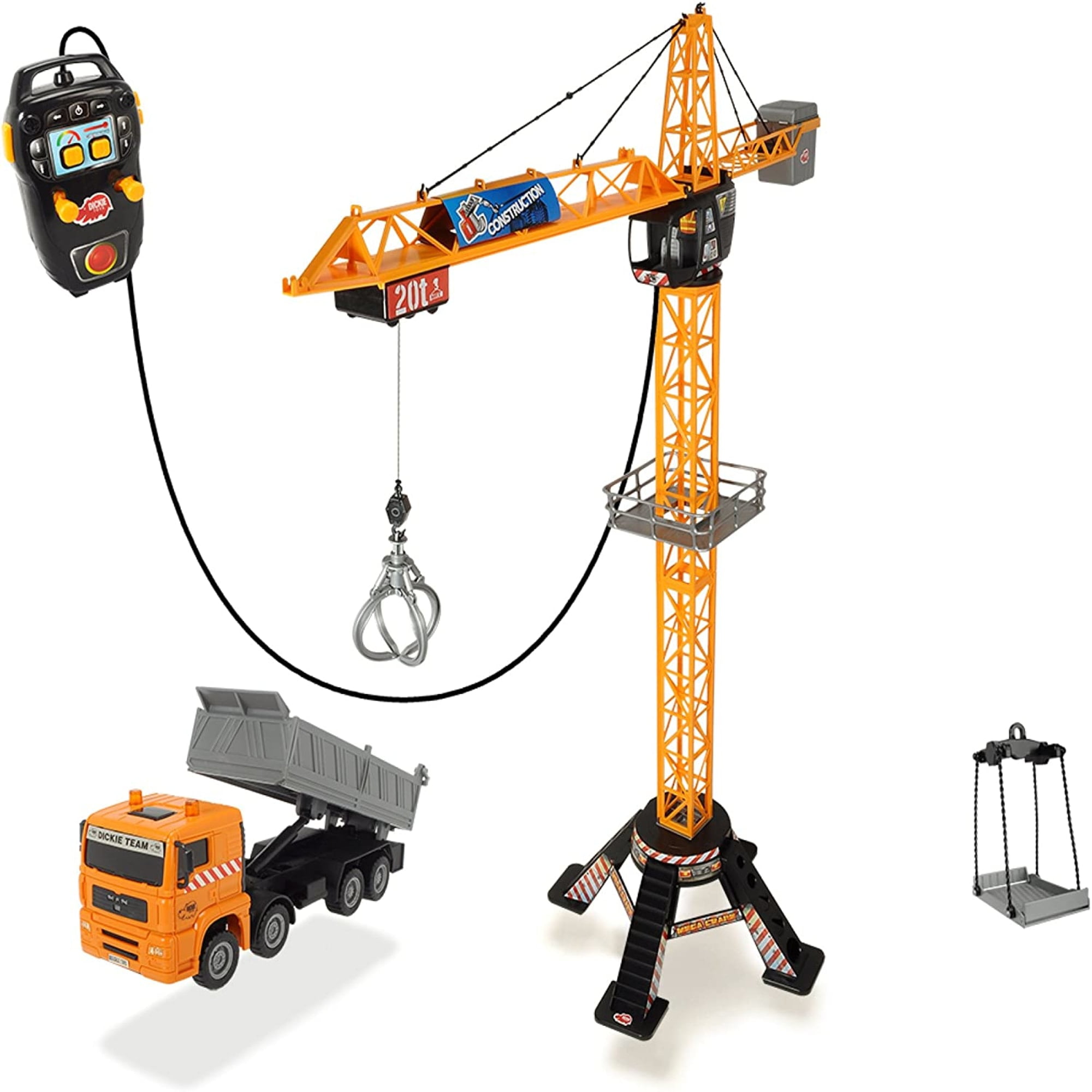 Dickie Toys Remote Control Mega Crane Set with Truck Crane’s arm goes up, down, left, and right for versatile play The cab door opens for realistic operation Instruction manual included for easy setup Requires 6 AA batteries (not included) Designed for boys ages 3 and up