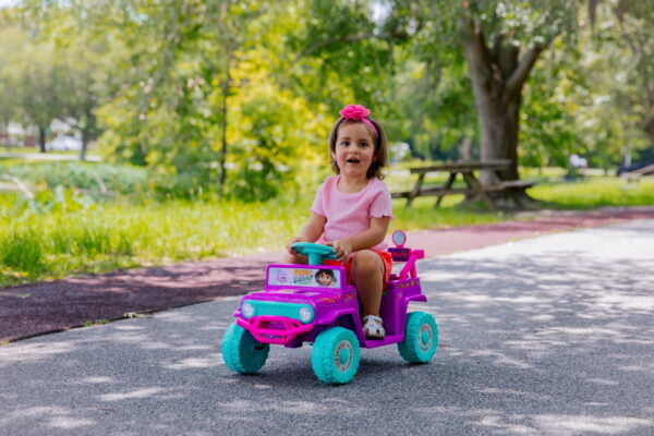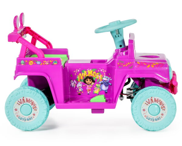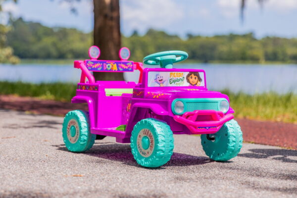 Bright and colorful Dora the Explorer-themed design Safe and sturdy 6V battery-powered ride-on Easy foot pedal for simple stop-and-go control Designed for toddlers ages 18 months to 3 years Fun dashboard details for imaginative play Low-profile design for easy on and off Perfect for indoor or outdoor use Supports motor skill development and independent play