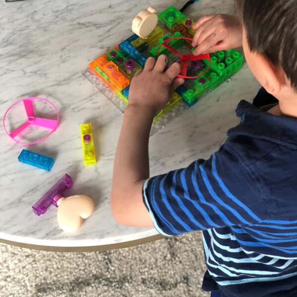 395 DIFFERENT PROJECTS: Learn about voltage, current and how circuits with switches, LEDs, resistors, capacitors, transistors, motors, speakers, integrated circuits, RC circuits, amplifiers and FM receivers work. SOUND & LIGHT CONTROL: Place the electronic building blocks on the PC board to start your creation. With the help of your power source, youll have the power to sound alarms, create light-activated sirens, and play the birthday song! STEM TOY: Designed to stimulate creativity & teach kids to investigate the world through creative reasoning & the systematic building of objects. Kids will get to innovate as they plug together bricks and modules to create their own toys & games. ELECTRONIC BUILDING BLOCKS: The colorful building blocks in this kit have electronic components that allow children to discover how circuits work. COMPATIBILITY: Directly compatible with other brick building construction sets and other major brick brands. Not your ordinary blocks!