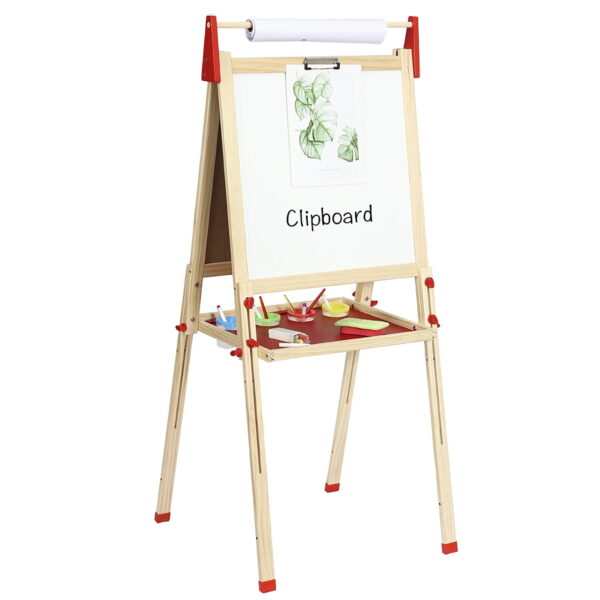 Easy Playhouse Easel for Kids, Wooden Whiteboard & Chalkboard Easel, Height Adjustable Double Sided Art Easel for Children with Paper Roll