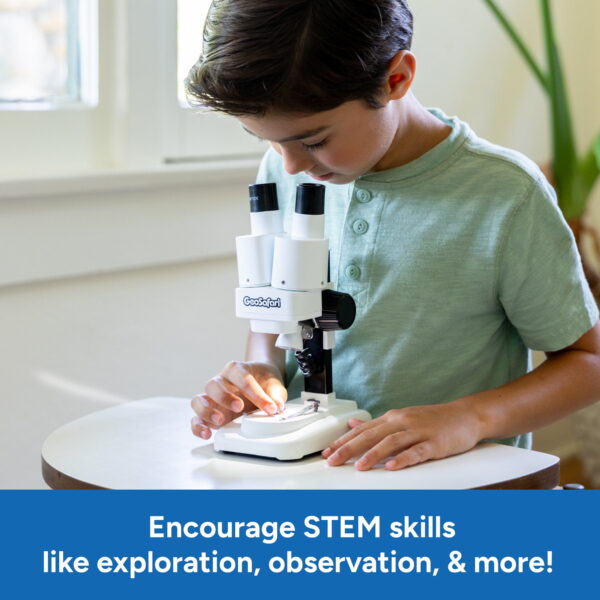A REAL, WORKING KIDS STEREOSCOPE: Bring everyday objects into magnificent, magnified focus with 20x magnification and easy-to-use double lenses A MAGNIFIED VIEW OF 3-D OBJECTS: Kid-friendly Stereoscope features double lenses with 10x and 20x magnification, a focus knob, stage with clips, and top light. The set also includes 12 rock samples for observation right out of the box PERFECTLY PORTABLE SCIENTIFIC FUN: Battery powered, the Stereoscope is perfect for on-the-go exploration and discovery (requires 2AA batteries – not included) STEM LEARNING: Supports STEM learning by encouraging scientific exploration and discovery PERFECT FOR OUTDOOR PLAY & AT-HOME LEARNING: Get kids outside to explore the world and stay curious! We are dedicated to providing resources that keep your kids learning and having fun