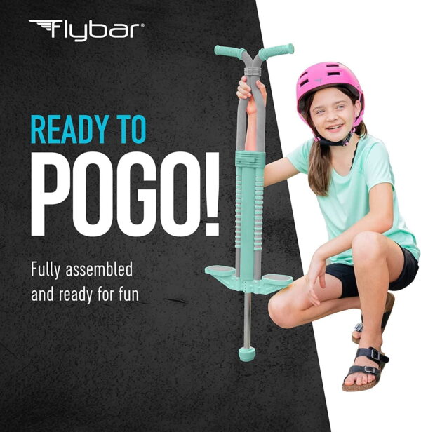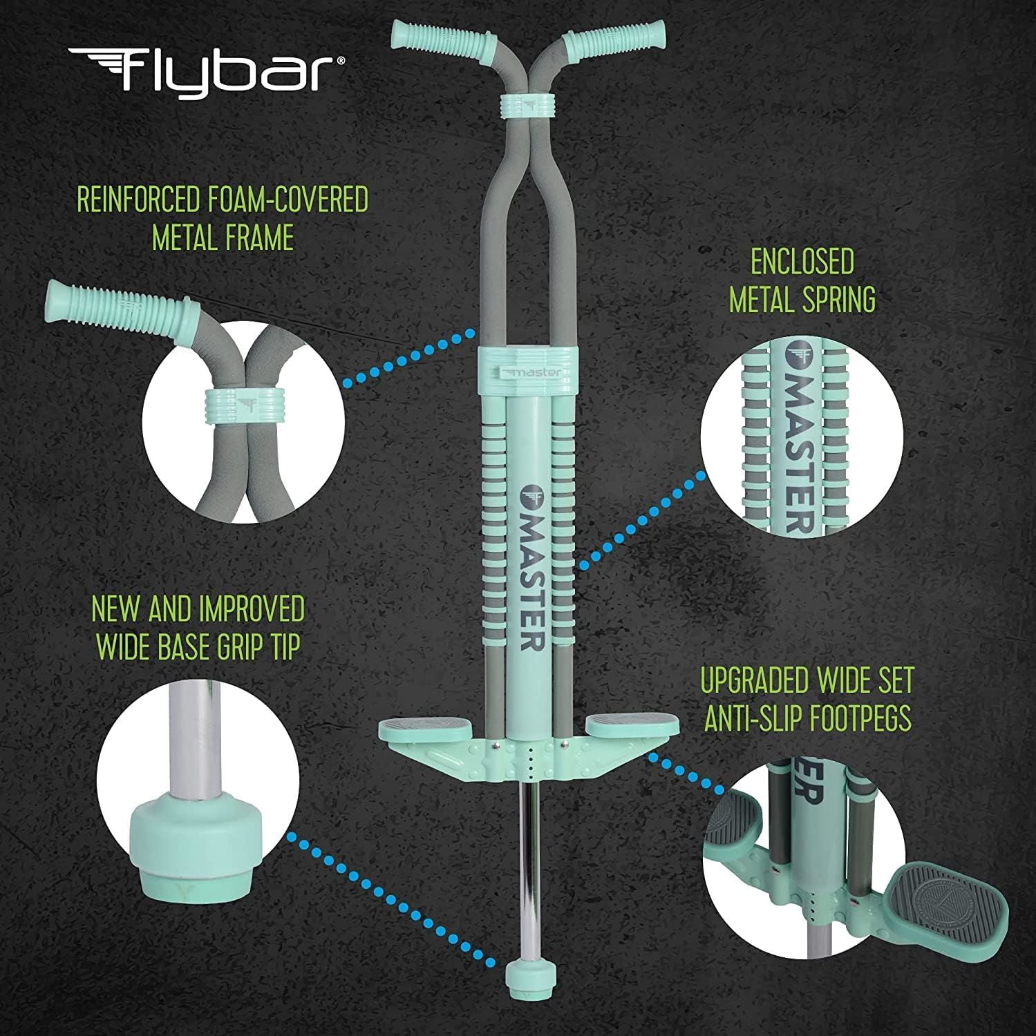 Flybar Master 2.0 Foam Pogo Stick for Kids Ages 9 and Up, 80-160 Pounds, Outdoor Kids Toys, Pogo Stick for Boys and Girls, Rubber Grip, by The Original Pogo Stick Company PERFECT FOR OLDER KIDS: This Flybar Pogo Stick is an ideal pogo for beginners to advanced riders. Designed for kids ages 9 and up with weight ranges from 80-160 pounds NEW AND IMPROVED: Features a fully enclosed spring thats surrounded by a foam-wrapped metal frame. The soft foam material offers a really cool look while also providing protection for your child SAFETY FEATURES: Reinforced shaft, piston, and spring, The core components have been reinforced for strength and durability. Show off your tricks with ease NON-SLIP FOOT PEGS: Wide textured footpegs increase stability. The pegs are also reinforced for safety and balance. The wider tip provides a stable, smoother bounce THE ORIGINAL POGO STICK COMPANY: Flybar has been in business since 1918 and continues to be “the standard by which all pogos are measured.” You can be assured that everything we make is the best of the best Unisex for boys and girls