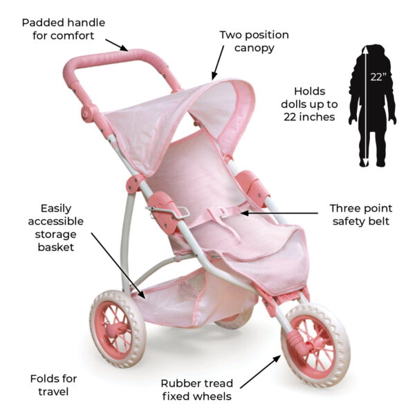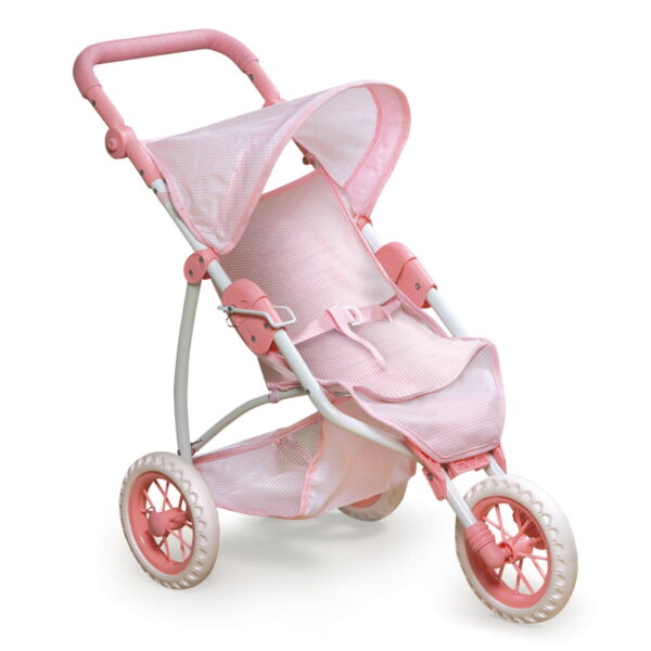 Folding Three Wheel Doll Jogging Stroller – Pink/Gingham