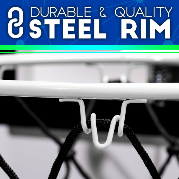 TWO PLAYER SHOOTOUT: This over-the-door basketball game comes with two hoops so you and a friend can shoot it out against one another for ultimate bragging rights BUILT-IN SCOREBOARD: The built-in LED scoreboard keeps track of time and score so you can keep focused on hitting your shots! DURABLE CONSTRUCTION: This mini basket comes with a shatterproof backboard and (2) 9.5″ spring-loaded steel rims that are built to stand up to threes and slam dunks MINI BASKETBALLS INCLUDED: Includes (2) 5″ mini basketballs so you and a friend can play at the same time FITS ANY STANDARD DOOR: This set is made to hang easily off the back of any standard size door and is made with foam-backed hooks to prevent damage to the door during play