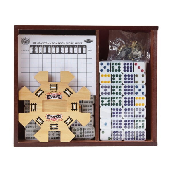 Popular and Engaging: Enjoy the timeless fun of Mexican Train Dominoes, a popular game also known as “Trains.” Gather family and friends for hours of engaging entertainment that transcends generations. Strategic Gameplay: Players strategically work to dispense all the dominoes in their hand by playing them onto one or more “trains” radiating from a central hub. This game combines strategy and social interaction for an immersive experience. Multiplayer Fun: Mexican Train Dominoes is suitable for 2 – 8 players, making it an ideal choice for family game nights, gatherings, and social events. Bring people together and create lasting memories with this interactive and inclusive game. Gift-Worthy Game: Make a wonderful impression with a gift that stands out. Mexican Train Dominoes is a thoughtful and enjoyable gift for individuals aged 8 and up. Celebrate special occasions with a game that brings joy and laughter. Premium Quality Set: Delivered in a felt-lined wood box with a sliding top, this set includes double-12 color-dot dominoes, 8 cast metal trains, and a solid wood train station and score pad. The high-quality components enhance the overall gaming experience.