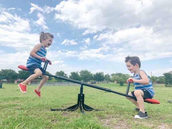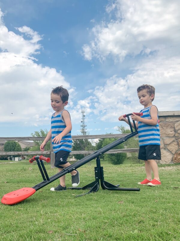 Crafted from sturdy metal and durable plastic components, the GENER8 Teeter Totter is built to last, promising endless hours of fun and excitement. This classic outdoor toy features both traditional up-and-down motion and a 360-degree pivot, adding an extra element of thrill to playtime. Perfect for burning off energy and honing balance and motor skills, it’s an ideal addition to any backyard playground. With its metal frame coated in powder for added durability, this teeter totter can withstand years of enthusiastic play. Suitable for children ages 3 years and up, this teeter totter is designed with safety in mind, with a weight capacity of 95 pounds per seat. Bring joy and laughter to your backyard with the GENER8 Teeter Totter, a timeless favorite for children of all ages.