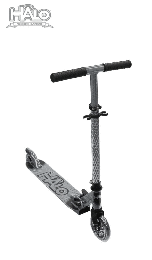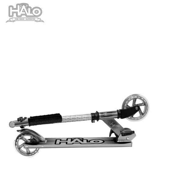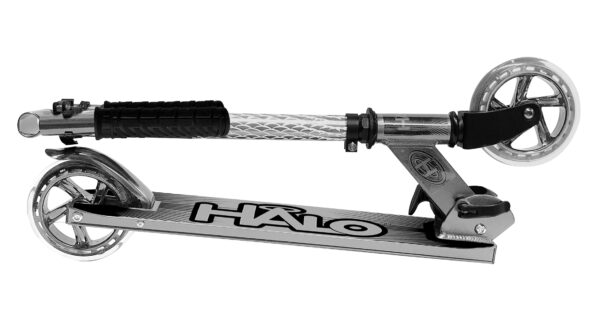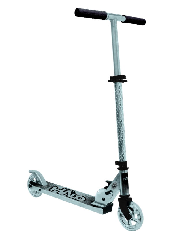 HALO Candy Chrome 120mm Wheel Scooter – Silver 120mm Wheel Chrome Folding Kick Scooter with height adjustable handle bars and comfort rubber grips ABEC-5 Bearings Premium Lightweight Aluminum Construction