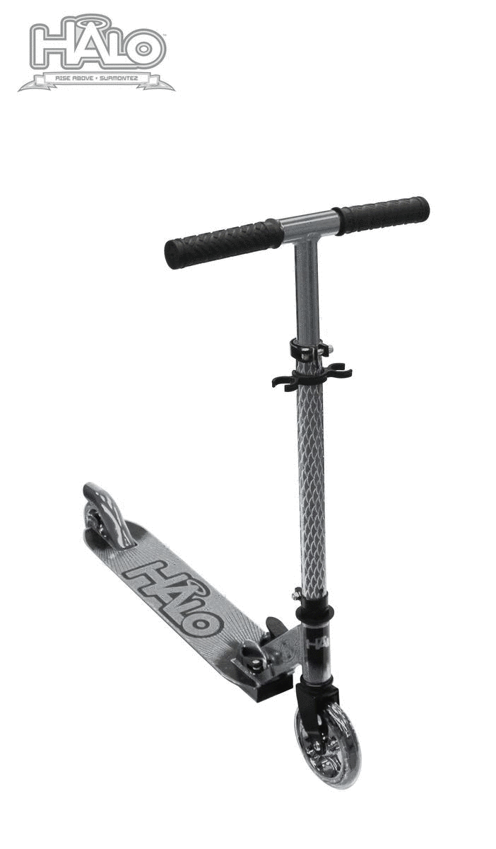 HALO Candy Chrome Scooter is equipped with long-lasting 120mm polyurethane wheels with high precision ABEC-5 bearings. Diamond engraved front tube, Height adjustable settings for handle bars allow riders of all sizes to have a perfect setup. Rubber handles provides the ultimate comfort. Easy to fold for quick and easy storage! Rear wheel footbrake for total control! Long-lasting, rust-resistant, lightweight aluminum construction.