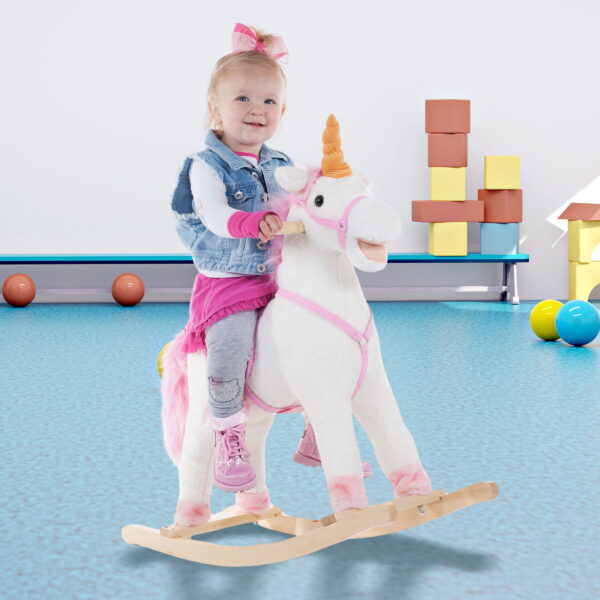 Happy Trails Ride-On Unicorn Rocking Horse with Sturdy Wooden Base for Toddlers Ages 3 and Up, (White)