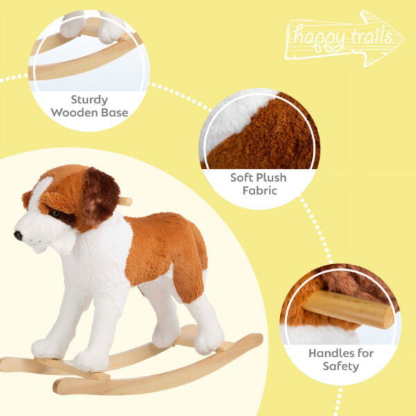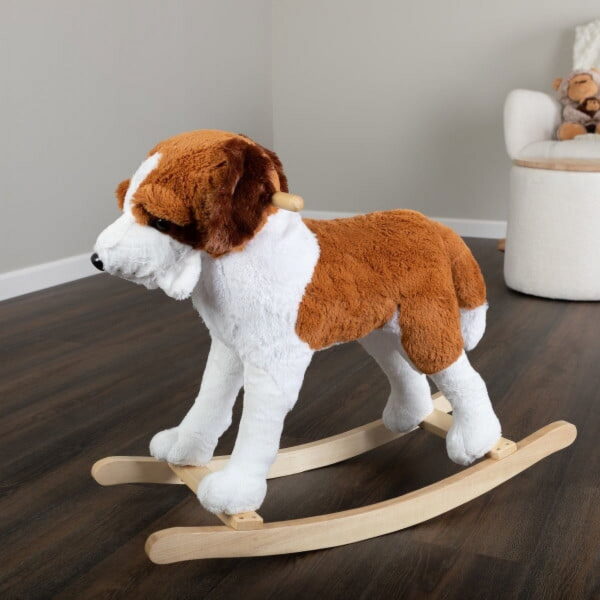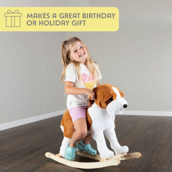 Happy Trails Rocking Horse – Plush Dog Animal Rocker for Ages 3 and up, Brown and White