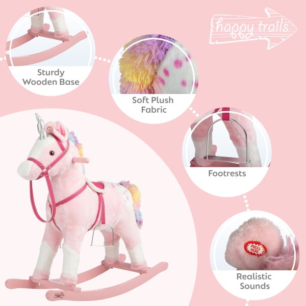 Happy Trails Rocking Horse – Plush Unicorn Animal Rocker for Ages 3 and Up