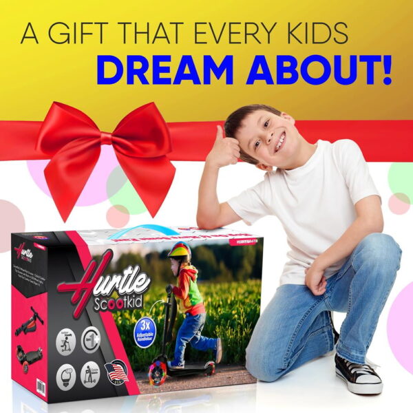 MULTI-COLOR WHEEL LIGHTS: The Hurtle Scoot Kid 3-Wheel Kick Scooters for Kids Boys & girls feature colorful LED turning wheel lights that light up in a variety of flashing colors as you scoot, adding a fun twist to the ride! It also makes the scooter stand out. ADJUSTABLE HANDLEBAR: The lightweight and compact kids scooter features an adjustable handlebar w/ 4 height options 25.5/27.5/31/34 inches, works w/ kids of all ages. Ideal for little one’s ages 1-year-old and up with a weight capacity of 132 lbs. SMOOTH RIDE: The mini toddler trike 3-wheel scooter is equipped w/ anti-slip and wide deck that is large enough to fit both feet. Also has smooth 120mm/80mm gliding roller wheels that run smoothly even on surfaces that are uneven or bumpy. LEAN-TO-STEER TECHNOLOGY: Features easy maneuvering w/ lean-to-steer technology, which means the mini scooter is controlled by leaning rather than turning the steering wheel, this design helps your child develop balance skills, coordination, and more. SIT OR STAND DESIGN WITH FOOTREST: This scooter for toddlers is equipped w/ a unique 45lb capacity removable flip-out seat which kids can use while cruising along with the built-in footpad. Can be detached when they feel more confident standing up
