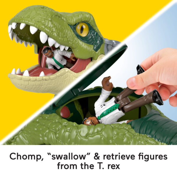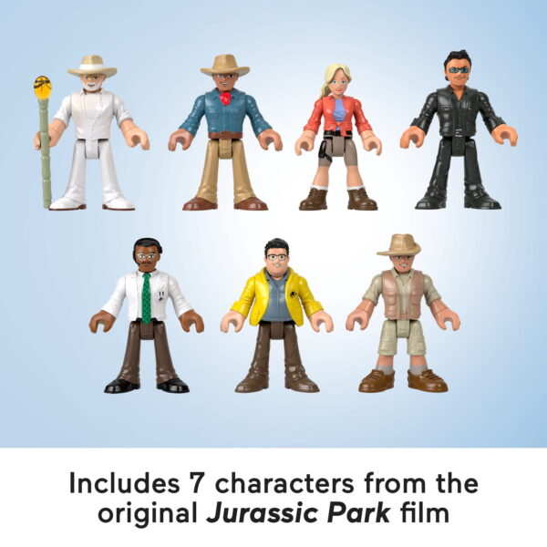 Kids can create epic dinosaur stories, inspired by the original Jurassic Park film, with this 19-piece Imaginext value bundle figure playset Kid-controlled action: Use the handle on the T. rex to lunge her forward, chomp and swallow figures down into her belly; open the rear door to empty & chomp again Capture loose dinos: Turn the Power Pad on the 6-wheeler to lower the rear claw to trap figures; press the trigger on the helicopter to grab figures with the claw Includes 7 movie characters: Dennis Nedry, Robert Muldoon, Dr. Alan Grant, Ray Arnold, Dr. Ellie Sattler, Dr. Ian Malcolm & John Hammond, plus dinosaurs, helicopter, 6×6 vehicle & cane piece Encourages imaginative play and storytelling for preschool kids ages 3 to 8 years old