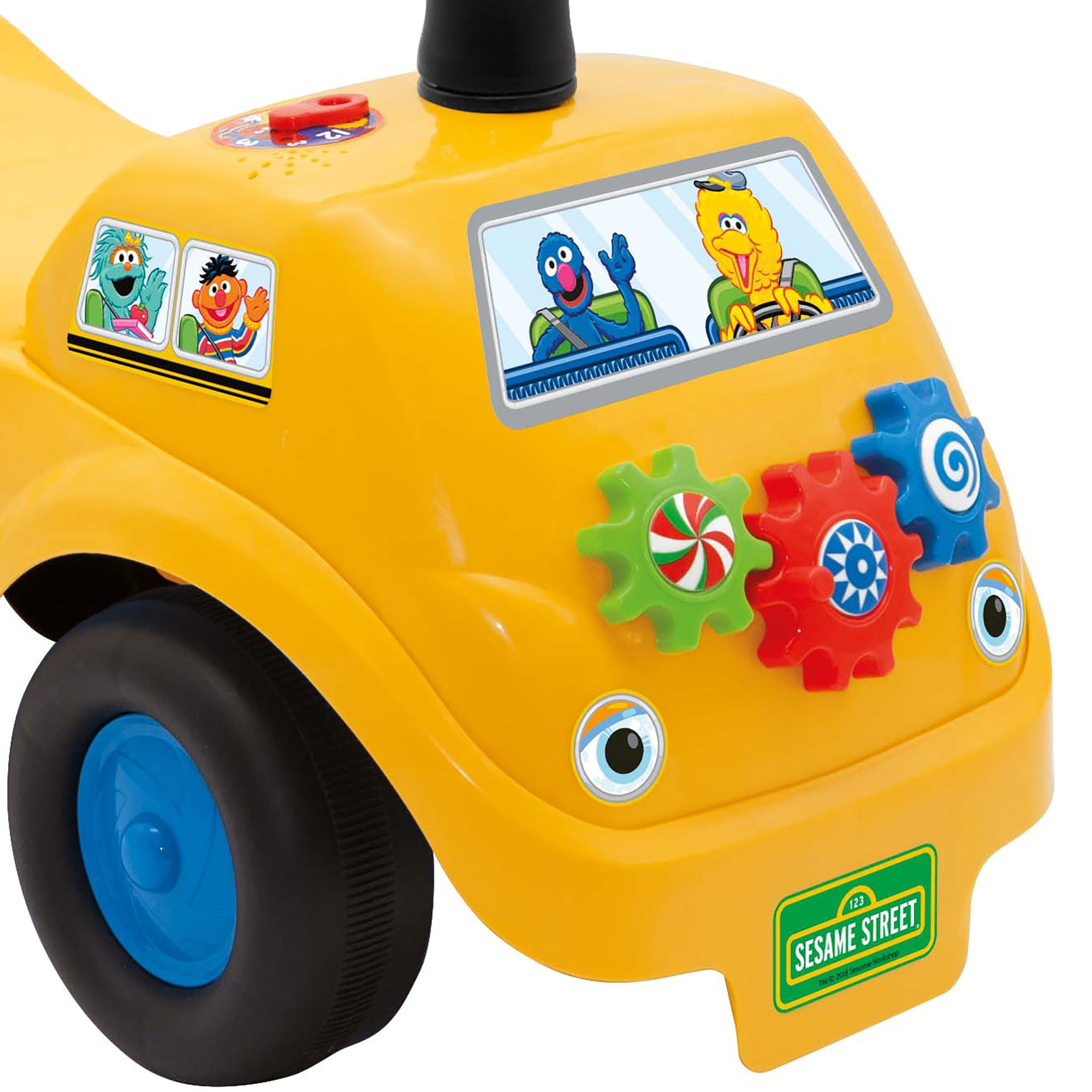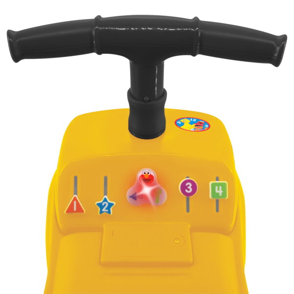 Kiddieland Elmo Ride-On, Lights N’ Sounds, Push & Pedal, for Toddlers 12-36 months Lights and sounds feature with fun sounds and flashing lights Interactive dashboard controls with electronic lights and sounds Realistic driving experience with revving engine and honking horn Thoughtful folding handle for easy storage and portability Designed for toddlers aged 12-36 months, promoting gross motor skills and independent play
