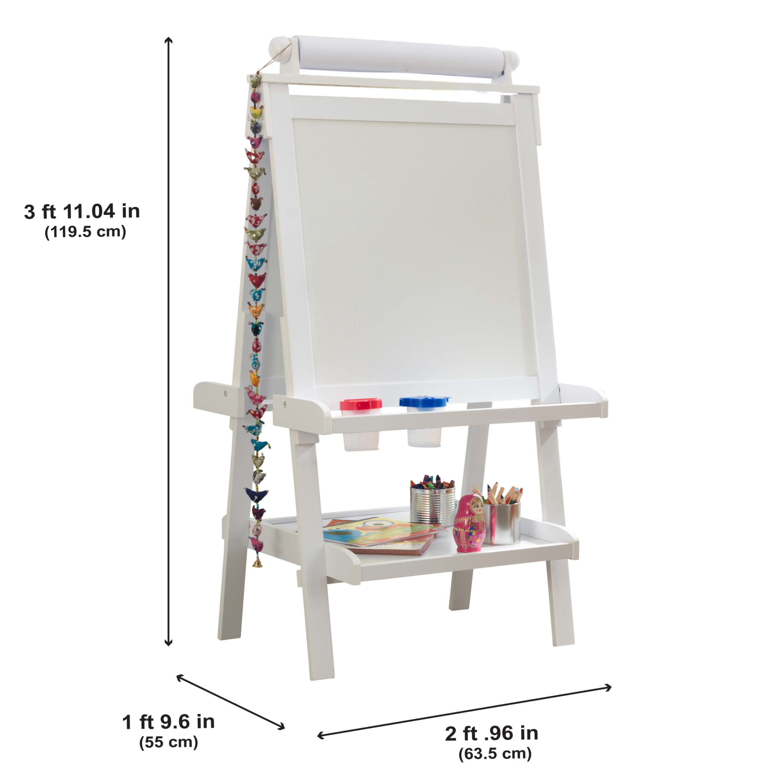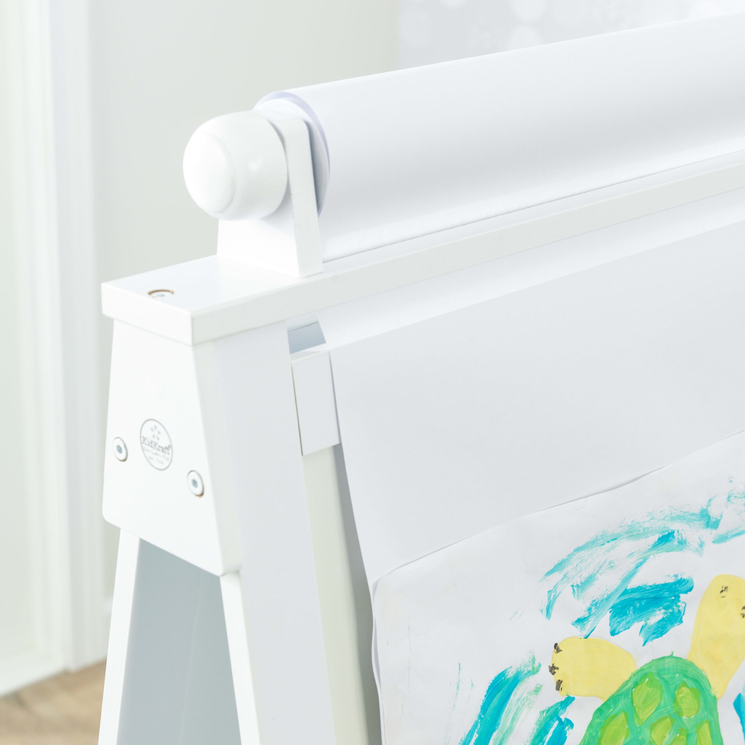 KidKraft Deluxe Wooden Easel with Chalkboard and Dry Erase Surfaces, Paper Roll and Paint Cups – White