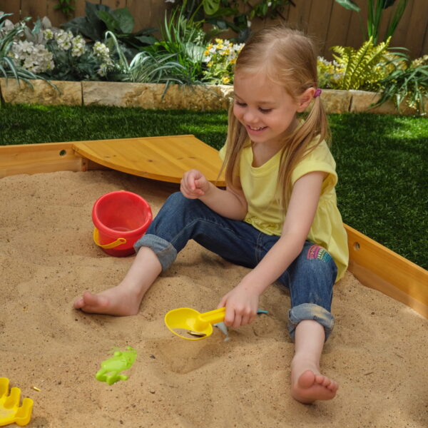 The KidKraft Backyard Sandbox gives kids a perfect place to build sandcastles, dig for treasure and play with all of their favorite sand toys. With built-in seating, there is plenty of room for multiple kids to play together. Seats can also be used to keep water bottles and snacks stable when they’re ready for a break. The weather-resistant wood and durable finish look great in any back yard space. And when playtime is over, the included mesh cover fits nicely over the top to protect the sand. Helps promote healthy independent and interactive play. Durable wood for long-lasting play and fun.