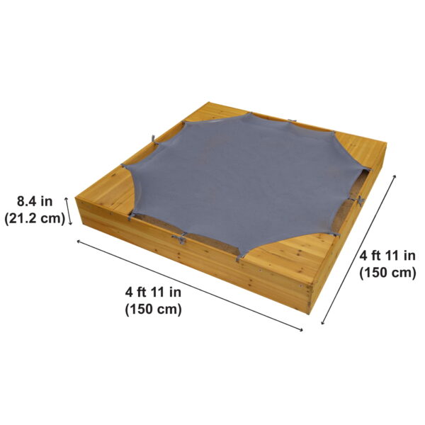 Crafted of premium, recyclable materials for long-lasting play Built-in seating for multiple kids or to hold water bottles, snacks, toys or bubbles Mesh cover to protect sand when playtime is over Large enough for multiple children to play together Includes plastic liner that goes underneath the sand Made of weather-resistant wood that is durable for long-lasting fun and play