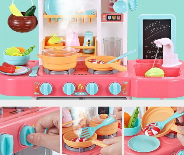 Kitchen Playset for Kids Pink 43-Piece Pretend Cooking Set with Light, Sound & Water Features
