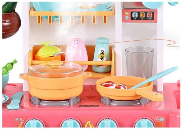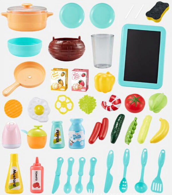 Turn playtime into a fun and educational cooking adventure with this 43-piece Spray Kitchen Playset for kids! Designed with vibrant colors and interactive features, this pretend kitchen includes a working faucet with a water pump, a stovetop with lights and sounds, a realistic oven, and plenty of storage space. Kids will love the steam-simulating spray effect, which mimics real cooking! The set comes with a wide variety of accessories, including utensils, pots, pans, and pretend food items. Ideal for children 3 years and older, this kitchen set fosters creativity, motor skills, and imaginative play. Made from safe, BPA-free plastic and easy to assemble. A perfect gift for birthdays, holidays, or everyday fun!.