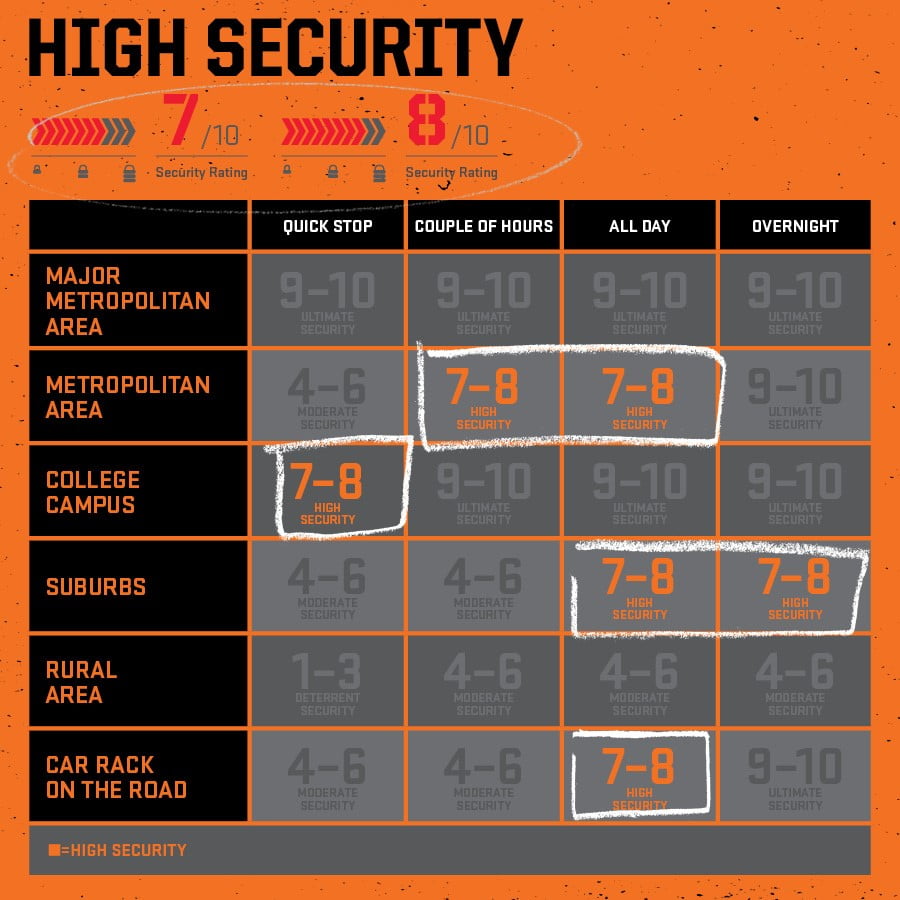 10mm six-sided chain links made from 3T MANGANESE STEEL. Patent-pending END LINK DESIGN secures chain to hardened deadbolt eliminating critical vulnerability. HIGH SECURITY DISC-STYLE CYLINDER is pick and drill resistant. Patented*, reinforced OVAL CROSSBAR LOCK HEAD. SLIDING DUSTCOVER protects and extends cylinder life. 3 STAINLESS STEEL KEYS. Durable WEATHER-RESISTANT nylon sleeve prevents scratches. Key Safe Program. Product dimensions: 35.5 (90cm) chain length.Product weight: 6.10 lbs (2.77 kgs).