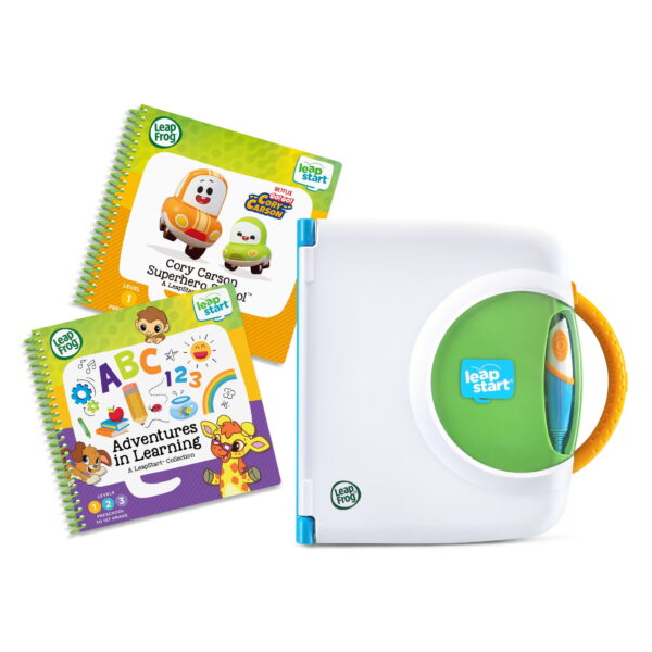 Explore exciting new ways to learn with the LeapStart Learning Success Bundle interactive system. Activities on the touch-and-talk pages include games, puzzles and creative challenges enhance math, reading, problem-solving skills and more grows with your child. The Go! Go! Cory Carson Cory Carson Superhero School book and an additional activity book are included. The expansive LeapStart library of books (sold separately) covers a variety of preschool through first grade subjects with more than 30 activities in every book. Many replayable activities have two levels with 50+ key skills per grade level. Included books are preloaded. The easy-to-hold stylus is comfortable for kids of all ages, promotes proper writing grip and neatly clicks into the cover for storage. Take it on the go using the carrying handle. Windows or Mac computer and Internet connection required to install content. For more details, please visit the LeapFrog website. Intended for ages 2-7 years. Requires 2 AA batteries. Batteries included. Child 2.53 lbs 10.748W x 9.5275H x 1.811D in