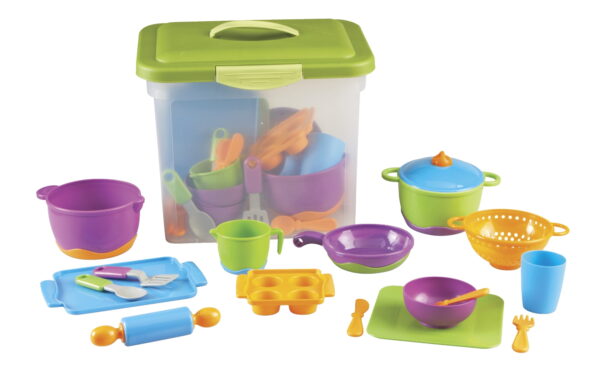 Learning Resources 44 Piece New Sprouts Classroom Kitchen Play Cooking Set, Multi-color