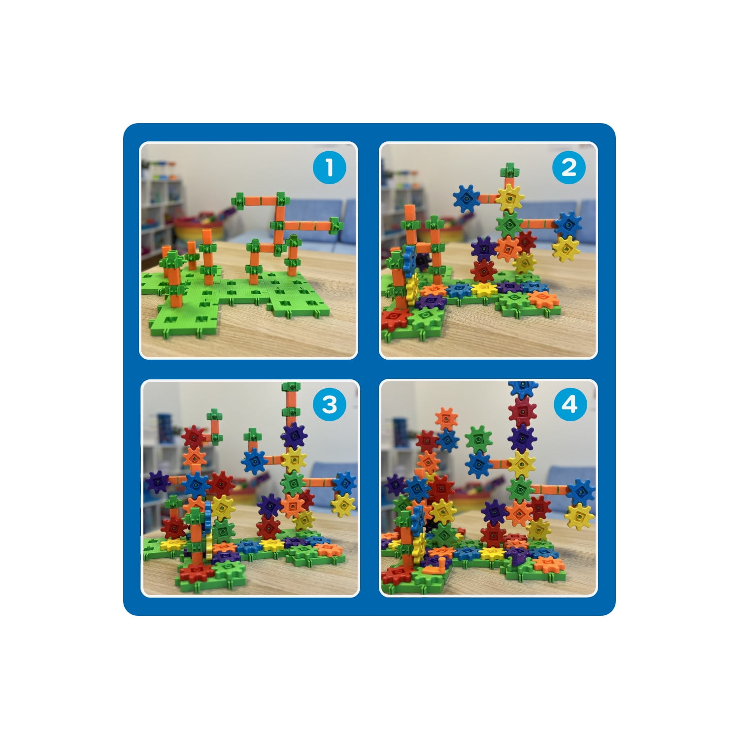 ENDLESS CREATIVITY -150 colorful interlocking pieces including gears, pillars, bases, and handles that inspire children to design and build unique moving structures while developing critical thinking DEVELOPS FINE MOTOR SKILLS – Easy-to-grip pieces perfect for little hands to snap together, helping children ages 3+ improve dexterity, hand-eye coordination, and spatial awareness CAPTIVATING MOVEMENT – Turn the included handles to set your entire creation in motion, creating chain reaction that teaches cause and effect relationships while providing immediate visual feedback. DURABLE CONSTRUCTION – Made from high-quality, sturdy plastic that withstands years of enthusiastic play, complete with a convenient storage bucket featuring a handle for easy cleanup GROWS WITH YOUR CHILD – Simple enough for toddlers to enjoy basic building yet complex enough to challenge older children’s engineering skills, providing exceptional play value