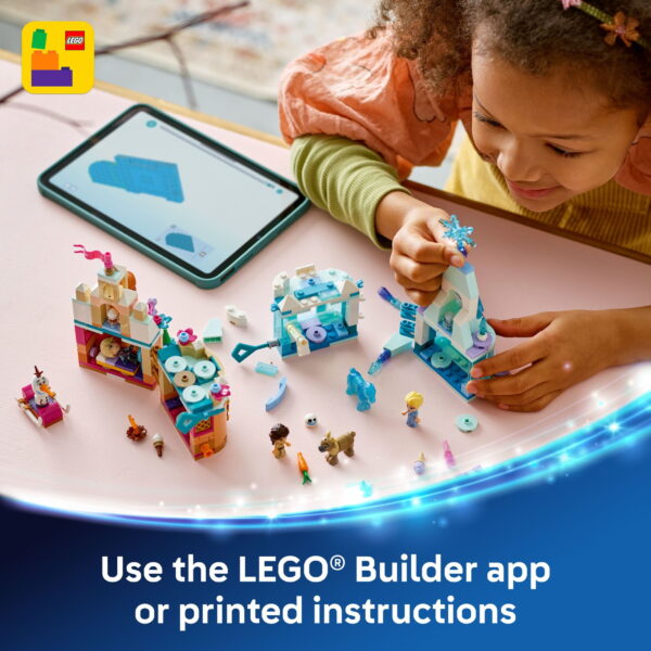 Unlock a world of magical storytelling with the LEGO Disney Frozen Mini Arendelle Castle & Elsa’s Ice Palace (43278), for adventurers 5 and up. Young builders bring the enchanting world of Arendelle to life with miniature versions of the iconic princesses’ castles and imagine a world of creative stories using a cast of beloved characters. As they build, kids will discover hidden chambers, unlock secret play features, and create their own frosty adventures with Elsa, Anna, Kristoff, and their magical friends. Make their princess dreams come true with a gift idea for girls and boys that lets them explore and create new memories in an immersive Frozen universe that fits in the palm of their hand. The intuitive LEGO Builder app lets children to zoom, rotate, and dive deep into their miniature world. Contains 306 pieces.