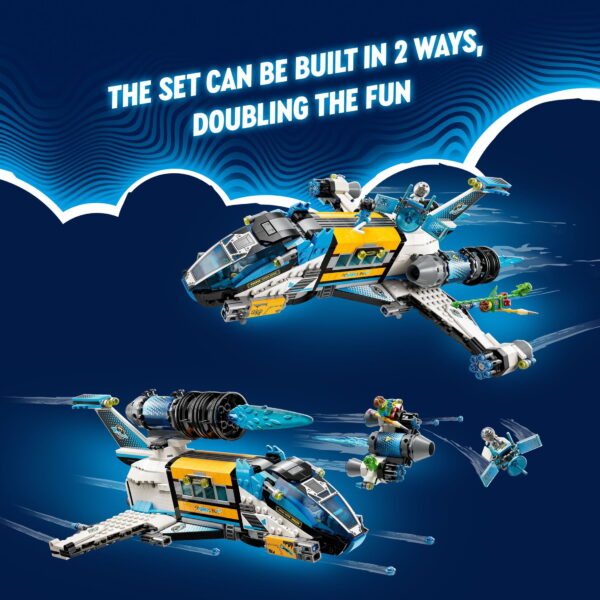 Give kids ages 9+ a wild ride into the dream world with this LEGO DREAMZzz Mr. Ozs Spacebus (71460) building toy set. Based on the exciting TV show, it lets kids build Mr. Ozs space shuttle bus and fill it with minifigures of important characters, including Mateo and Mr. Oz. They help save the dream world from a band of nightmare creatures. Once kids have completed the basic school bus space shuttle, they can choose their own adventure by customizing it with rockets and blasters or by building a huge cannon, starfighter and mini-spaceship to accompany it. This means double the fun and double the playtime. Additional cool features include an opening cockpit and rear cargo ramps, plus rotating thrusters and blasters. Detailed minifigures of Mr. Oz and Mateo help bring the adventure to life as they go on powerful missions to save other kids from nightmares. Kids can load the crew into the spaceship toy and get ready for takeoff! Makes a great gift for kids ages 9 and up with a love of space exploration! Contains 878 pieces.