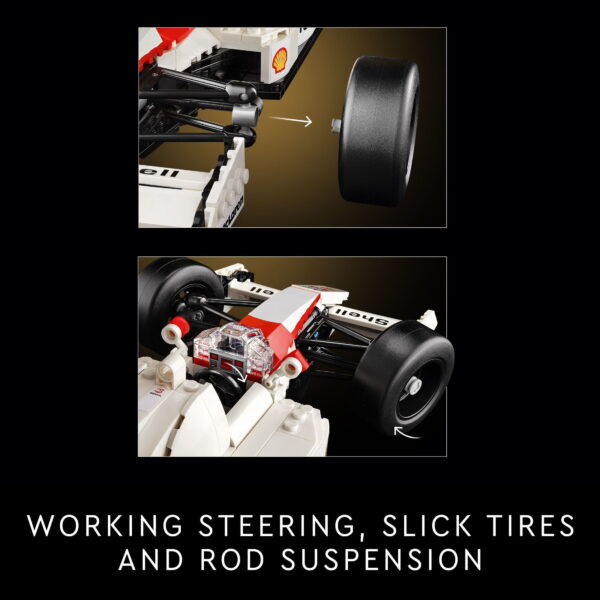 Gift a race car fan with the LEGO Icons McLaren Model Car MP4/4 & Ayrton Senna (10330) building set for adults. Developed in collaboration with McLaren and the SENNA brand, this in-scale replica model features accurate detailing that captures the look and feel of the legendary 1988 racer ranked as one of the most successful F1 race cars of all time. This set also features a displayable Ayrton Senna minifigure. The McLaren MP4/4 replica features working steering, rod suspension, an adjustable rear wing, slick tires, mirrors, a gearshift and a detailed turbocharged V6 engine, plus a display stand and information plaque with interesting statistics for the perfect F1 gift. The Ayrton Senna minifigure comes with a podium-style display stand and an information plaque with an iconic Ayrton Senna quote and photo perfect for home office dcor. Find space for relaxation with the inspiring range of LEGO building sets designed specifically for adults and gift ideas for home offices. The LEGO Builder app features a digital version of the building instructions included with this set. Contains 693 pieces.